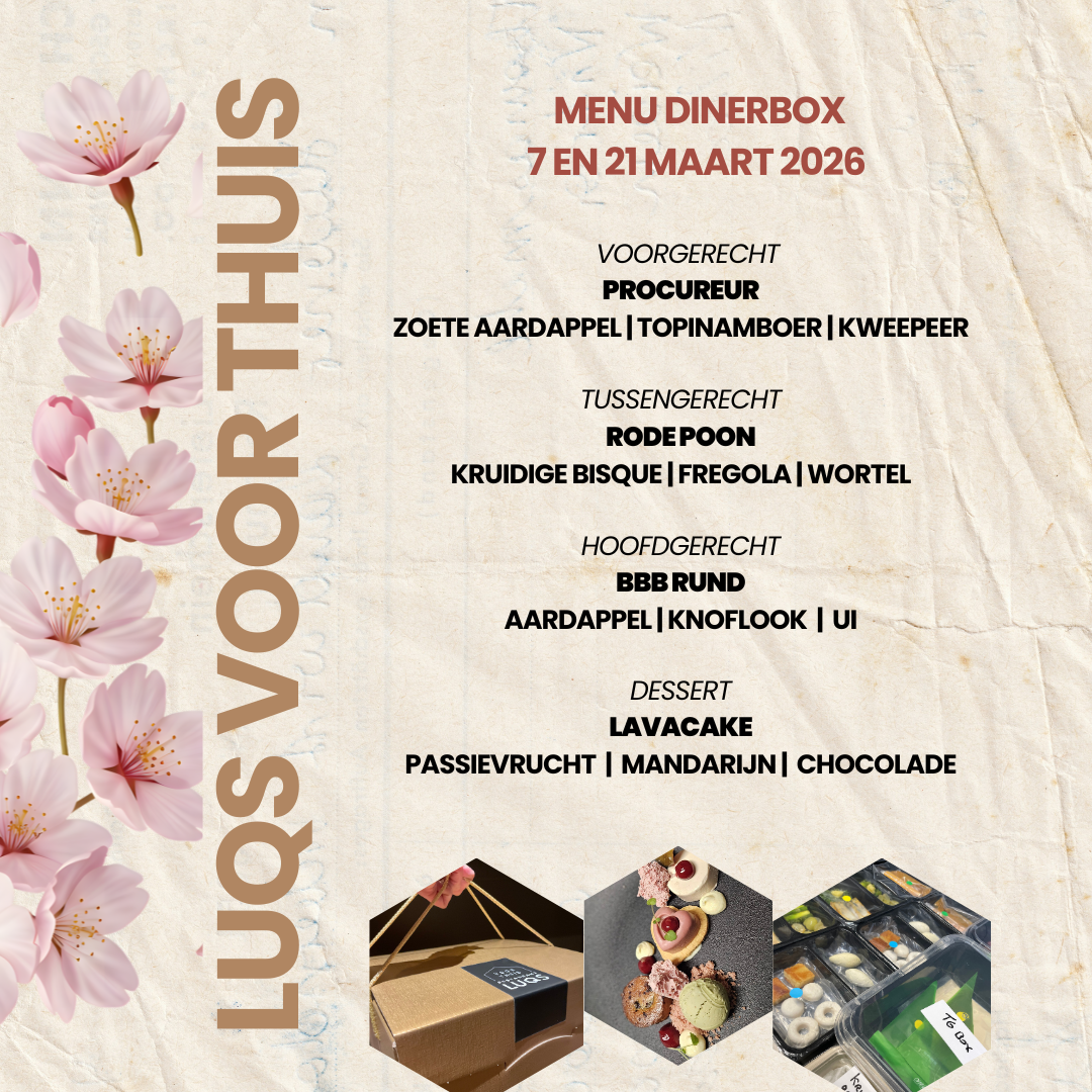 Chef Jeffrey Meessen heeft een menu samengesteld dat alle verfijning, creativiteit en passie van Restaurant LUQS naar jouw eettafel brengt.
